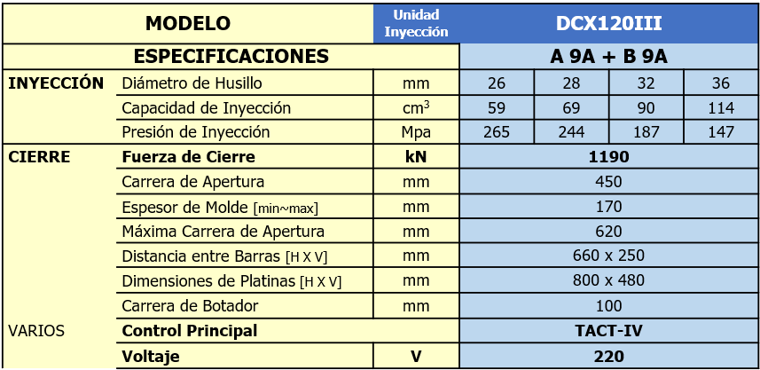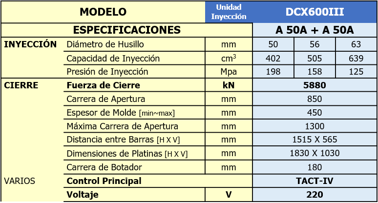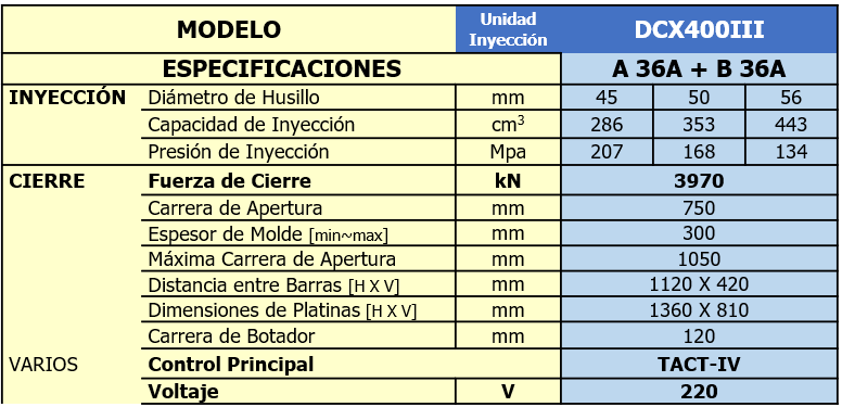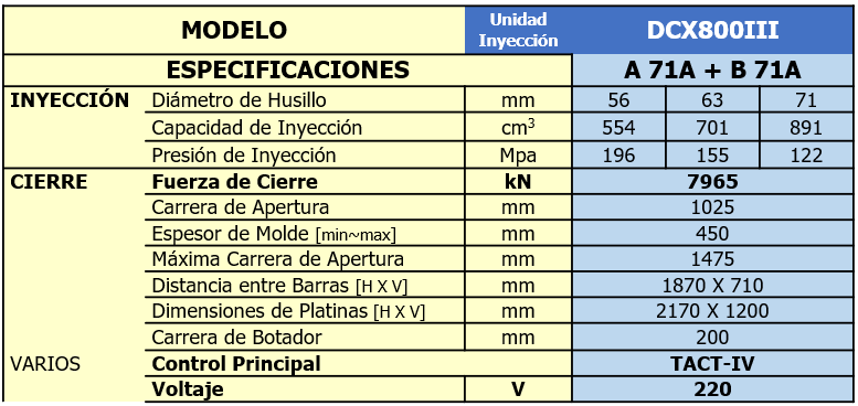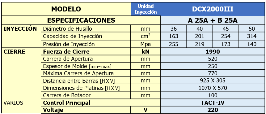 • Inyección de dos materiales distintos ó dos colores distintos en diferentes capacidades de inyección.